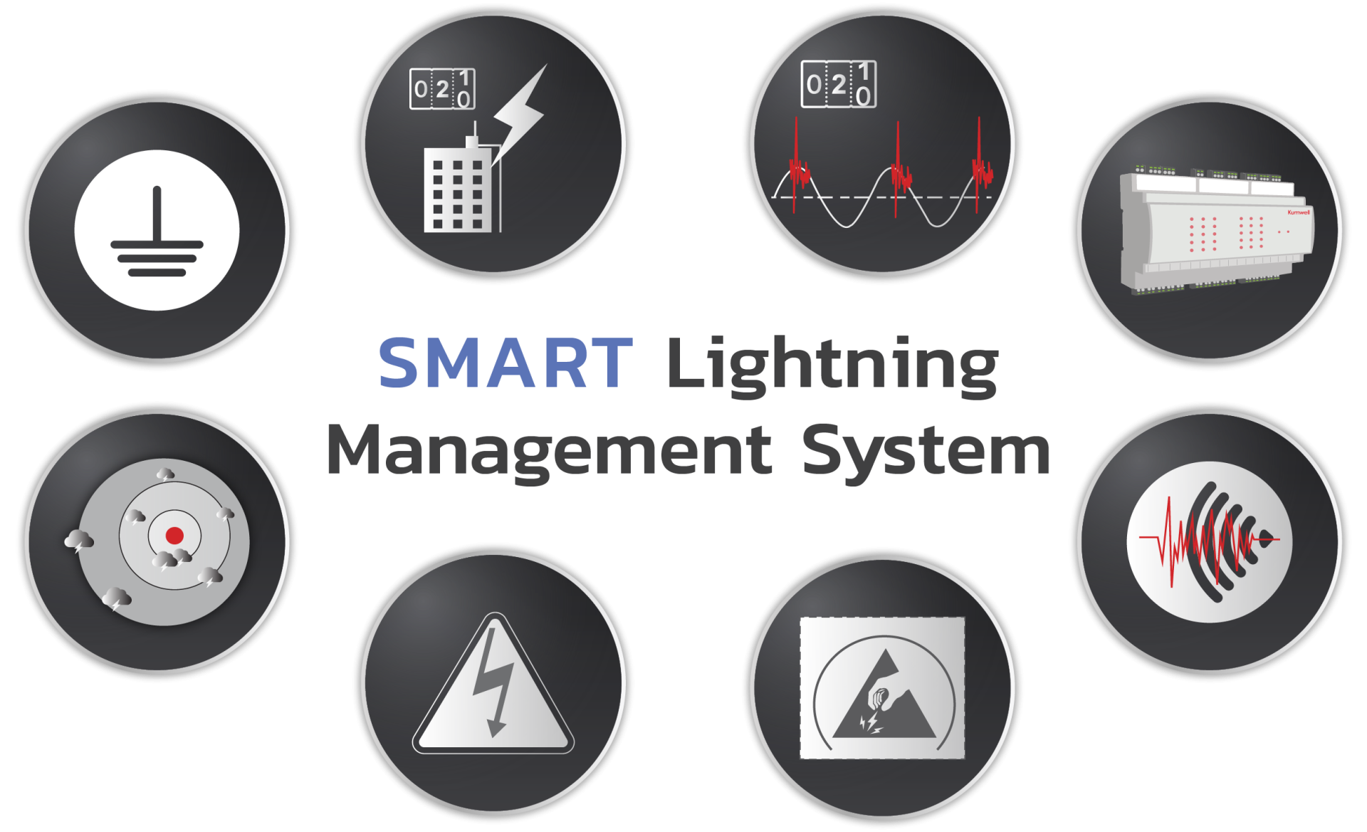 ระบบการจัดการป้องกันฟ้าผ่าอัจฉริยะ (Smart Lightning Management System) นวัตกรรมอัจฉริยะที่สามารถมอนิเตอร์สถานะการทำงานโดยรวมของระบบป้องกันฟ้าผ่า, ระบบต่อลงดิน และระบบป้องกันเสิร์จ โดยสามารถแจ้งเตือนอย่างทันท่วงทีต่อภัยคุกคามจากฟ้าผ่าและสนามแม่เหล็กไฟฟ้า เพื่อ ให้ระบบสามารถปฏิบัติการได้ในทุกสภาวะไร้รอยต่อ