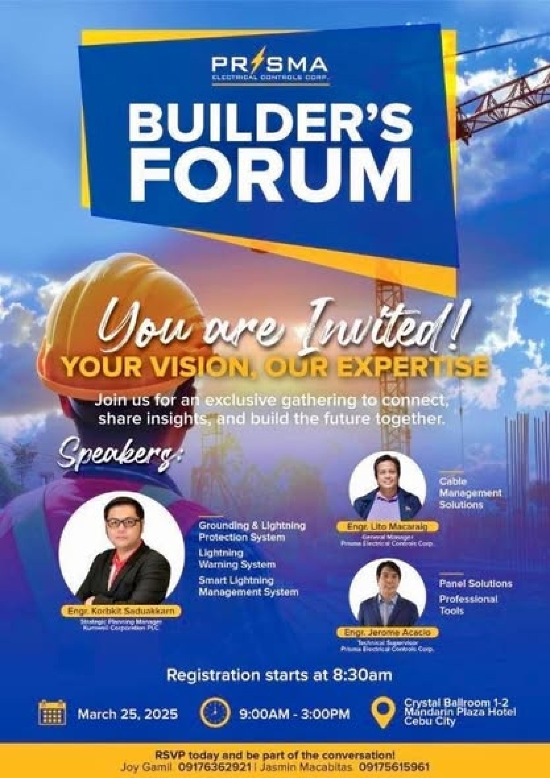 25 March 2025, Kumwell Corporation PLC proudly joined hands with Prisma Electrical Controls Corp. at the Builders Forum, held at Crystal Ballroom 1-2, Mandarin Plaza Hotel, Cebu City.