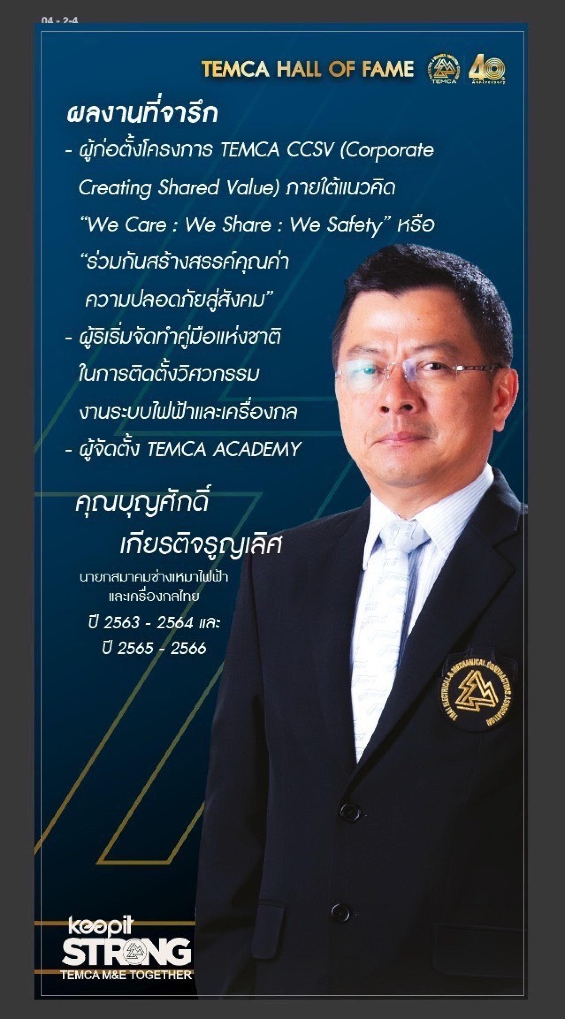 การได้รับรางวัล TEMCA Honor Award ในครั้งนี้ จึงนับเป็นอีกหนึ่งเกียรติยศที่สะท้อนถึงวิสัยทัศน์ ภาวะผู้นำ และความมุ่งมั่น ในการสร้างคุณค่าร่วมให้แก่สังคม ควบคู่ไปกับการยกระดับวิชาชีพ ทั้งในภาคอุตสาหกรรมไทย ตลอดจนถึงภูมิภาคอาเซียน
