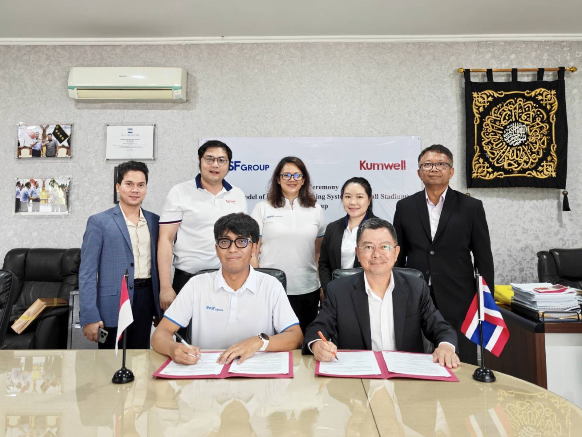 Kumwell Corporation Public Company Limited and PSF Group held a signing ceremony today at PSF Groups head office in Jakarta to launch the Project Model of Smart Lightning Warning System (Football Stadium), which has been implemented at Pancoran Soccer Field as the first installation under this collaboration.