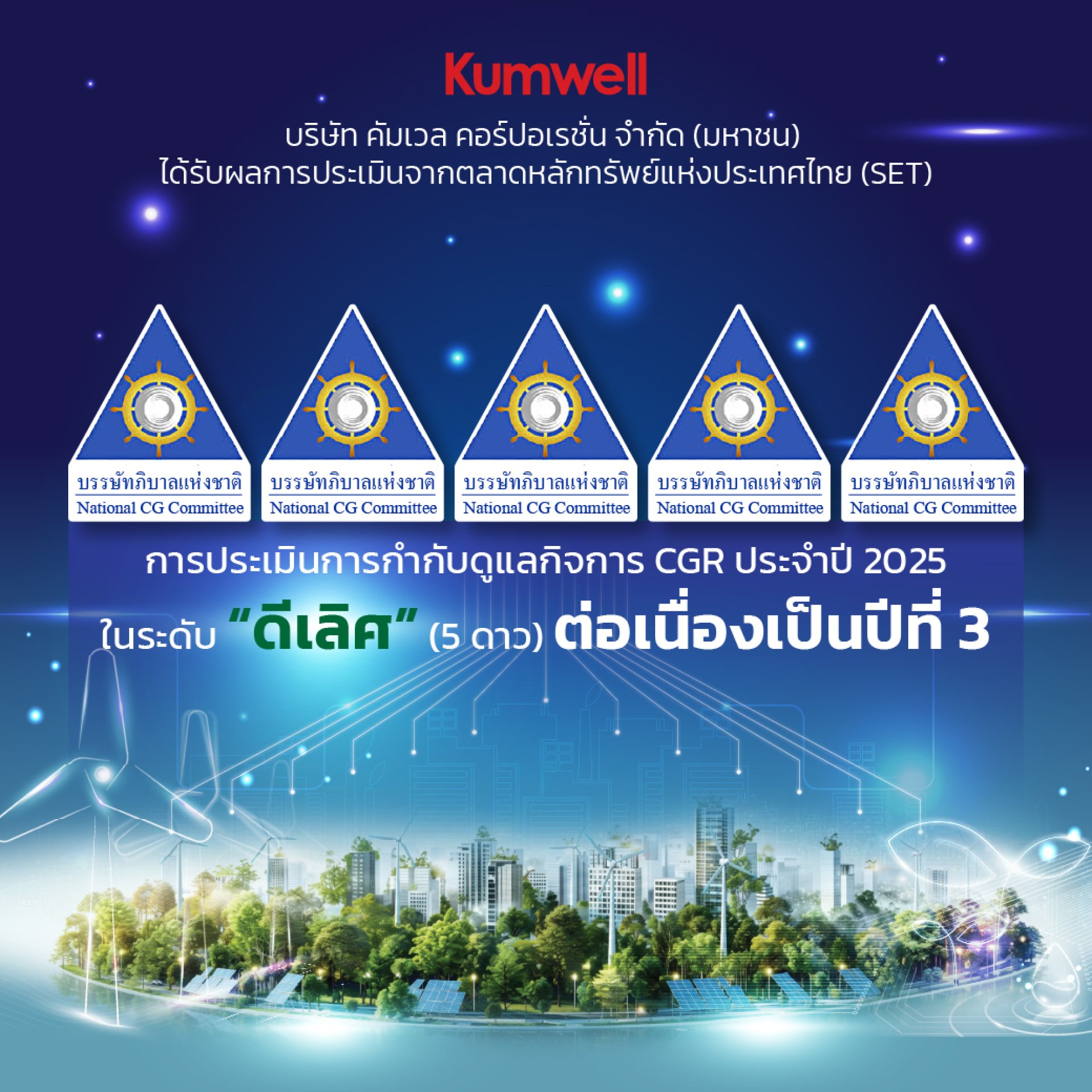 Kumwell Corporation Public Company Limited has been awarded a "Excellent" (5-Star) rating for Corporate Governance Report (CGR) 2025