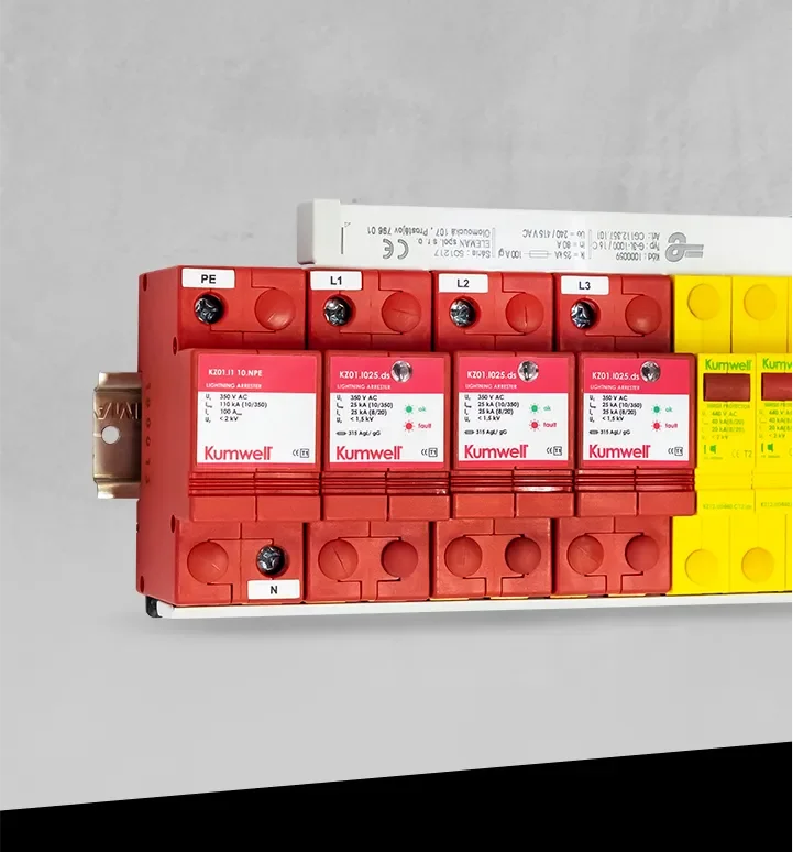 Kumwell offers a full range of Surge Protective Devices (SPDs), covering Class/Type I, II, and III applications, including AC and DC power systems, solar power generation systems, signal lines, and communication systems all certified according to IEC 61643 standards.